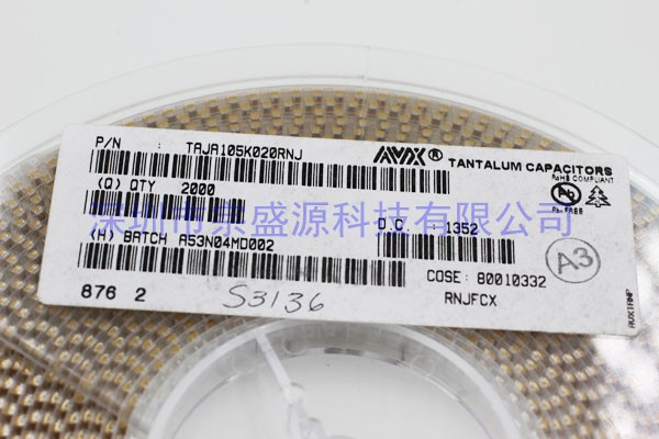 AVX鉭電容TAJA105K020RNJ? 3216 20V 1UF A型 105D