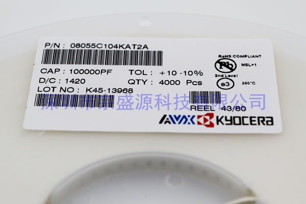 AVX陶瓷電容 0805 50V 0.1UF 08055C104KAT2A